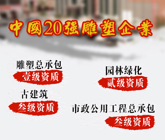 河北鑫特園林建筑雕塑有限公司成立于2002年,是中國雕刻之鄉——曲陽縣的一家實力雄厚的大型雕塑公司,公司占地面積50000+平方米,年產值超過億元,具有雕塑總承包一級資質、古建筑三級資質、市政公用工程施工總承包三級資質。